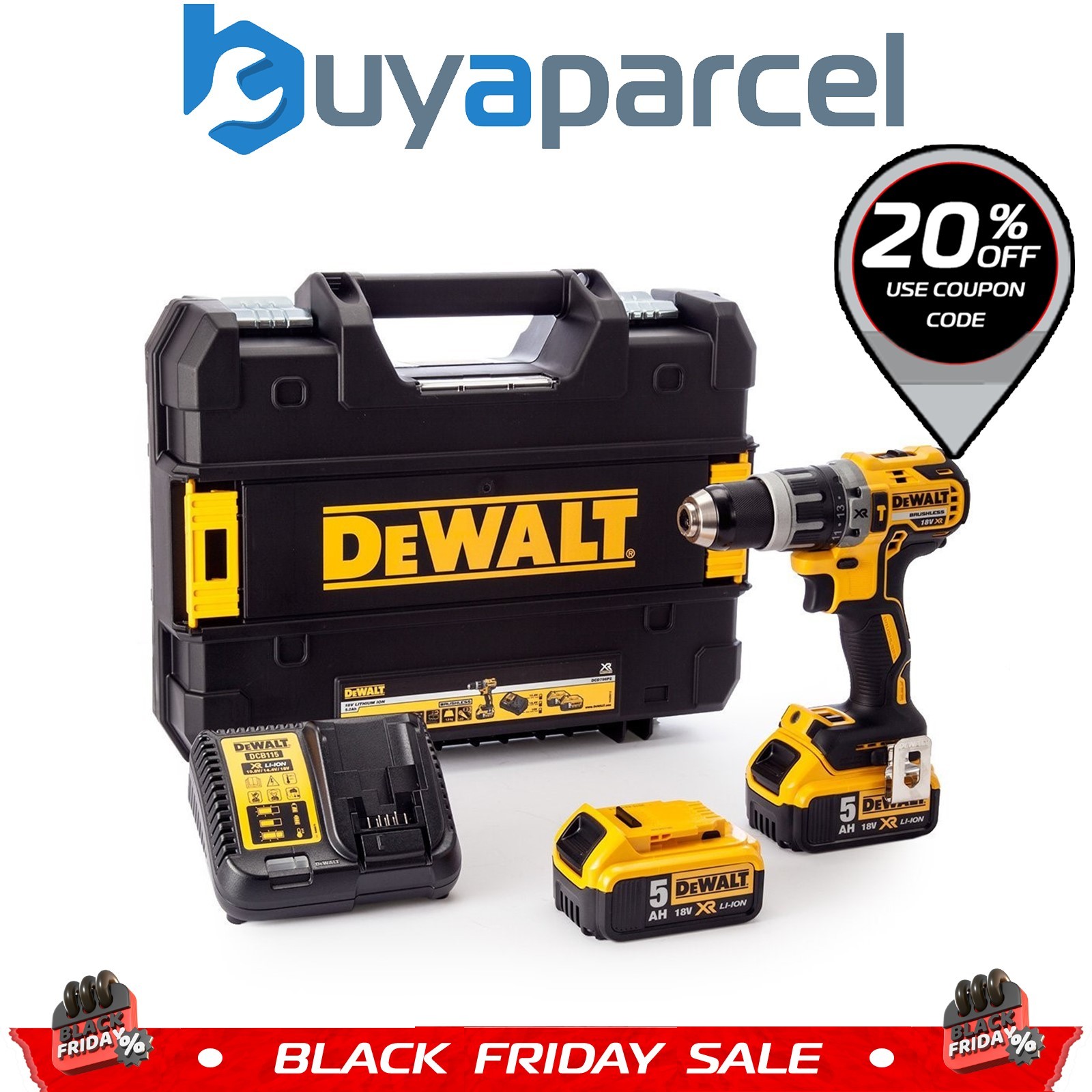 Dewalt DCD796 18V Brushless Compact Combi Drill With 2 x 5Ah Batteries & Charger