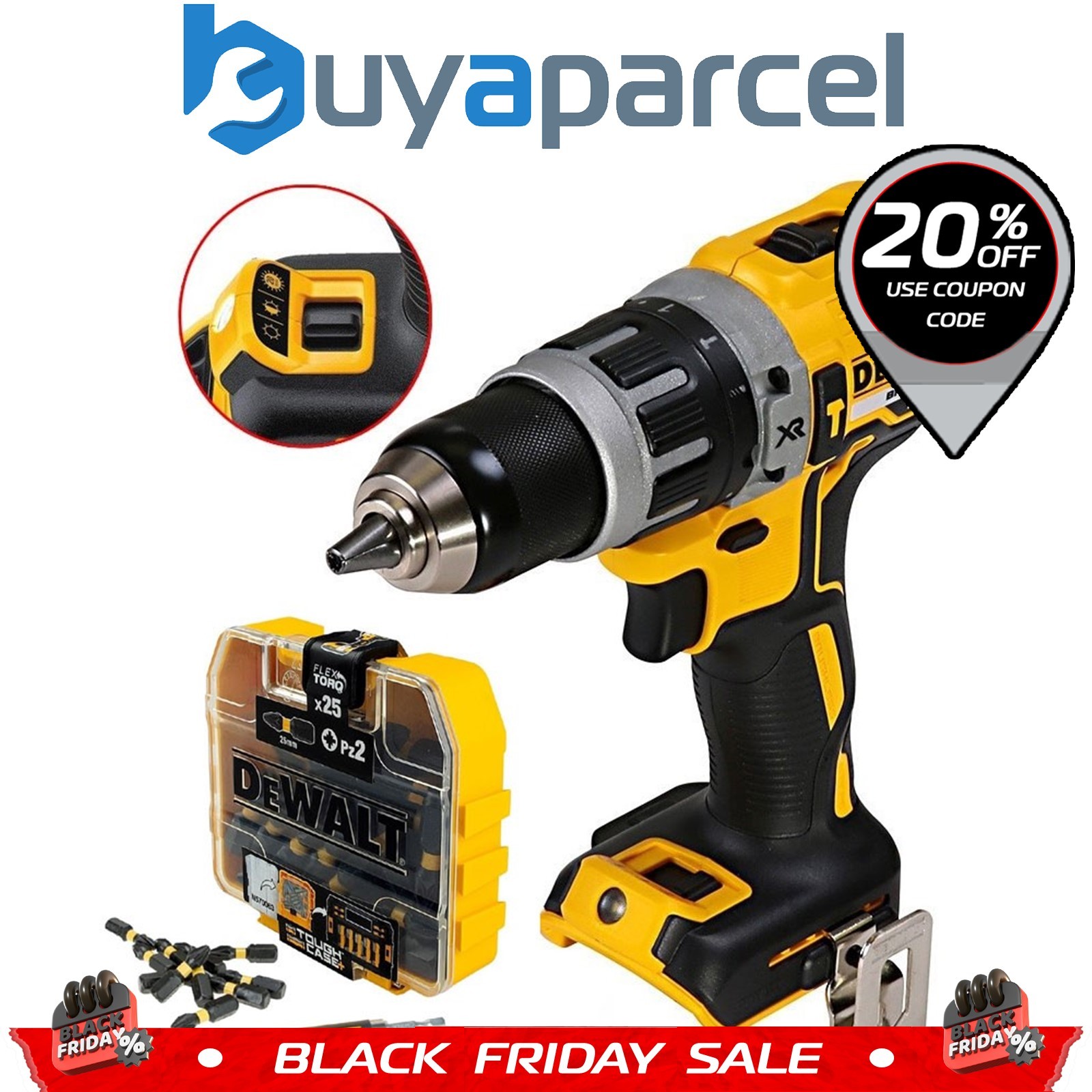 Dewalt DCD796N 18v XR Li-Ion Brushless Compact Combi Hammer Drill + 25PC Bit Set