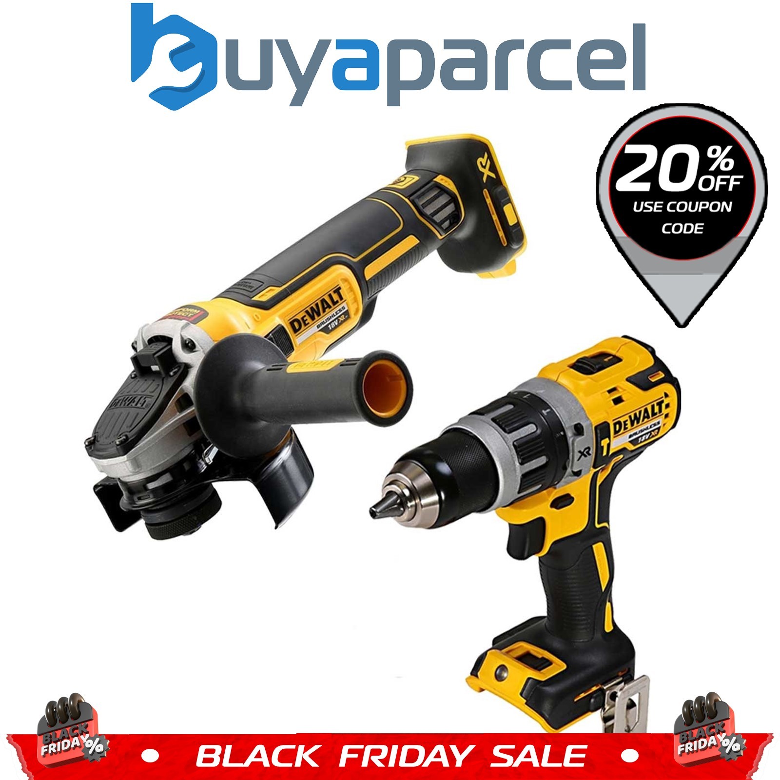 Dewalt DCK2080 18v XR Brushless Kit DCD796 Combi Drill DCG405 Angle Grinder Bare