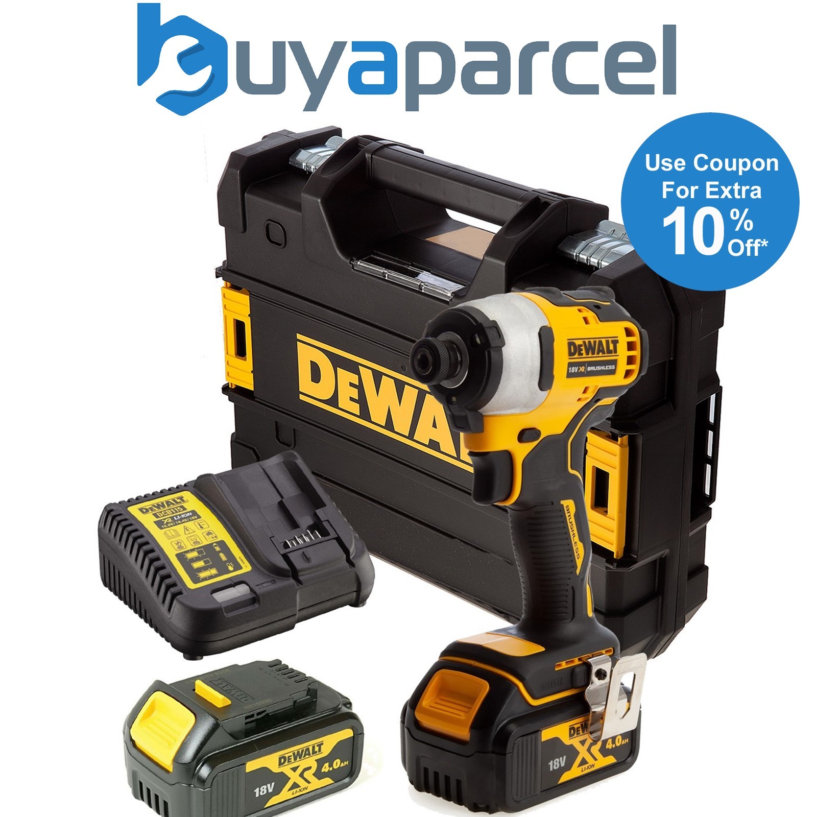 Dewalt DCF809M2 18v XR Brushless Impact Driver - 2x4.0ah Batteries Charger Tstak