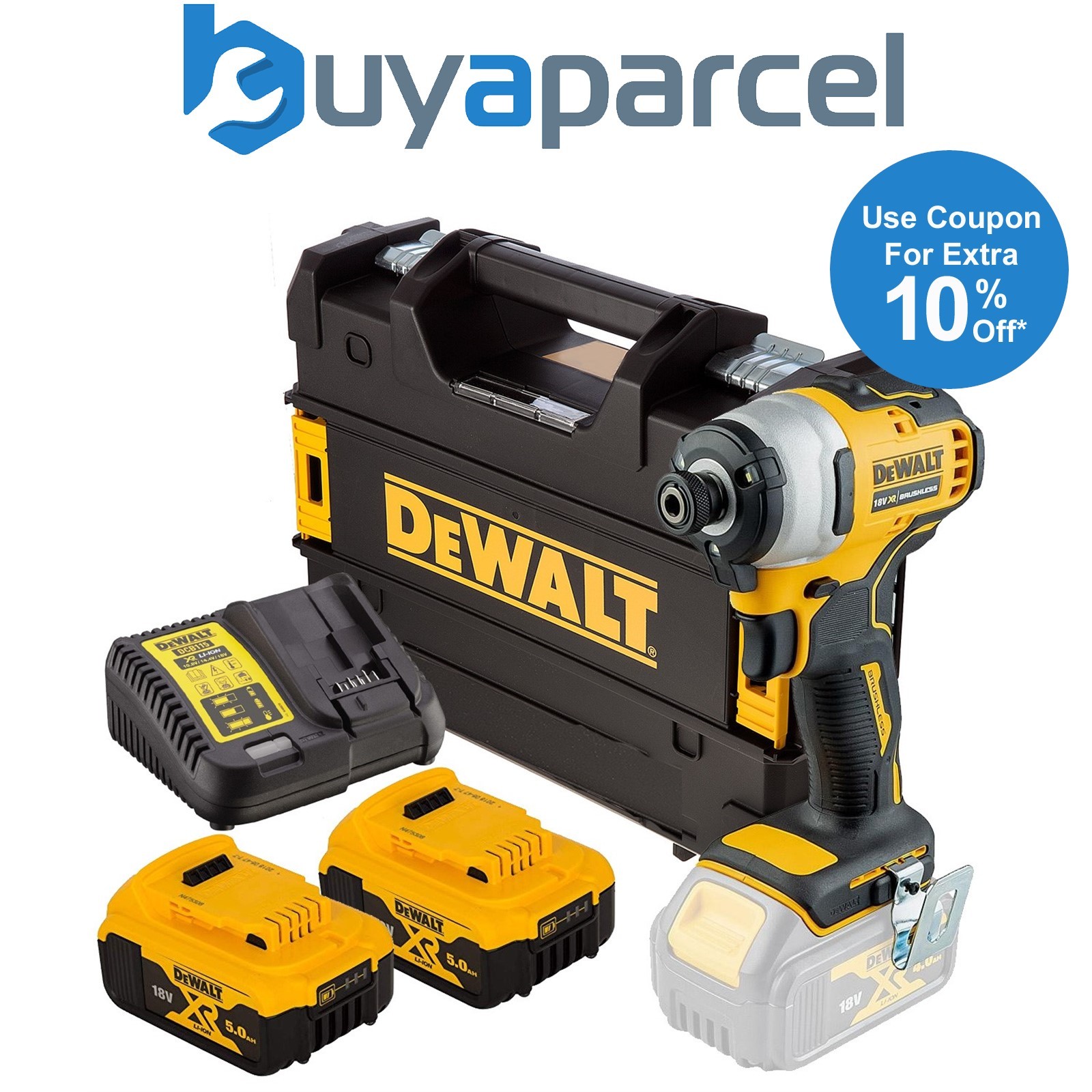Dewalt DCF809P2 18v XR Brushless Impact Driver - 2x5.0ah Batteries Charger Tstak