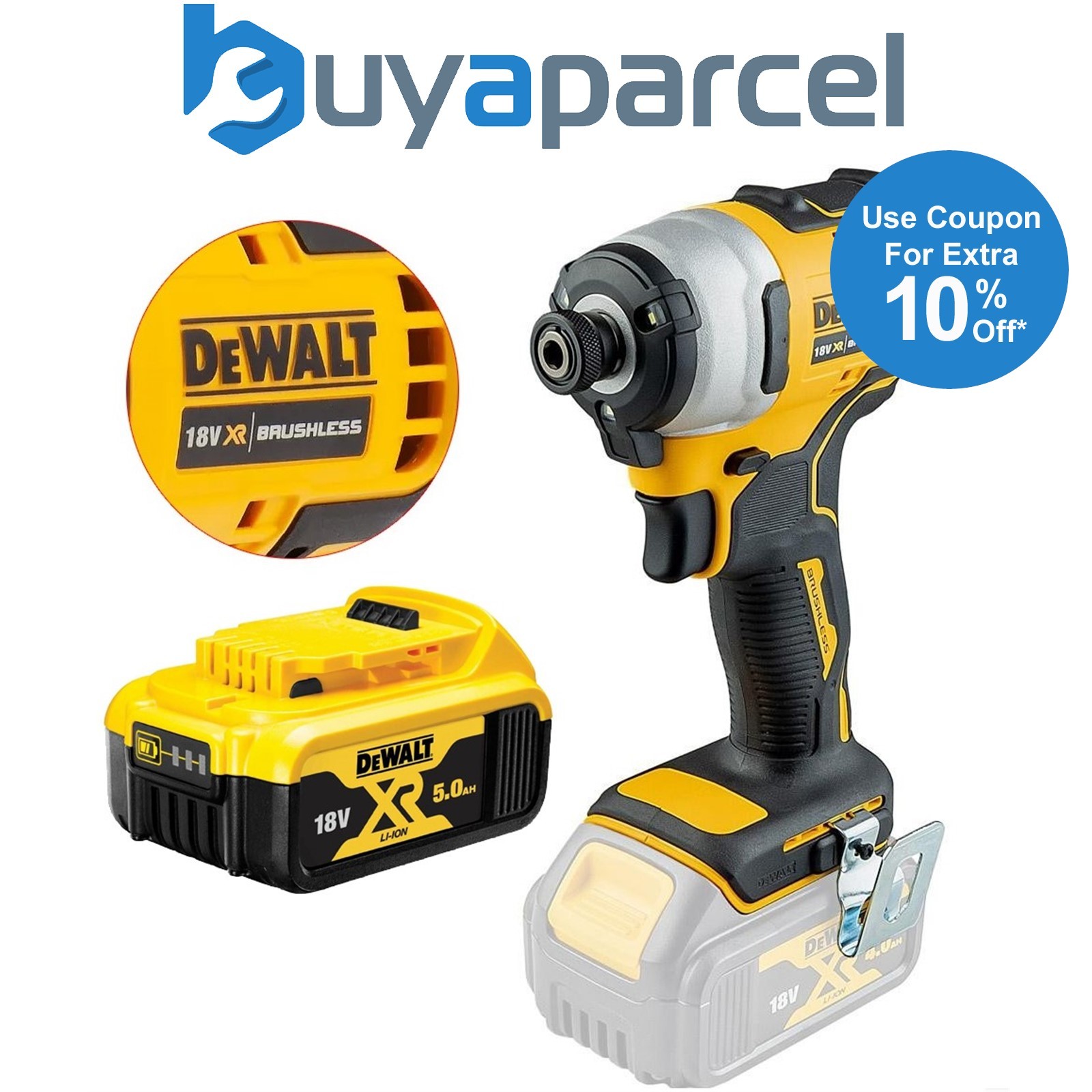 Dewalt DCF809N 18v XR Brushless Compact Impact Driver Bare Tool + DCB184 5.0ah