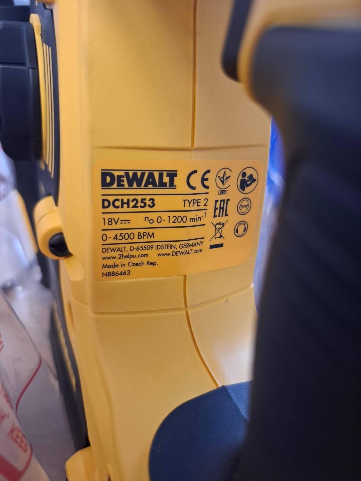 DEWALT DCH253N-XJ 18V XR Lithium-Ion SDS Plus Body Only Rotary Hammer Drill, Yellow/Black, 4.17 cm*13.07 cm*8.66 cm + DEWALT Battery