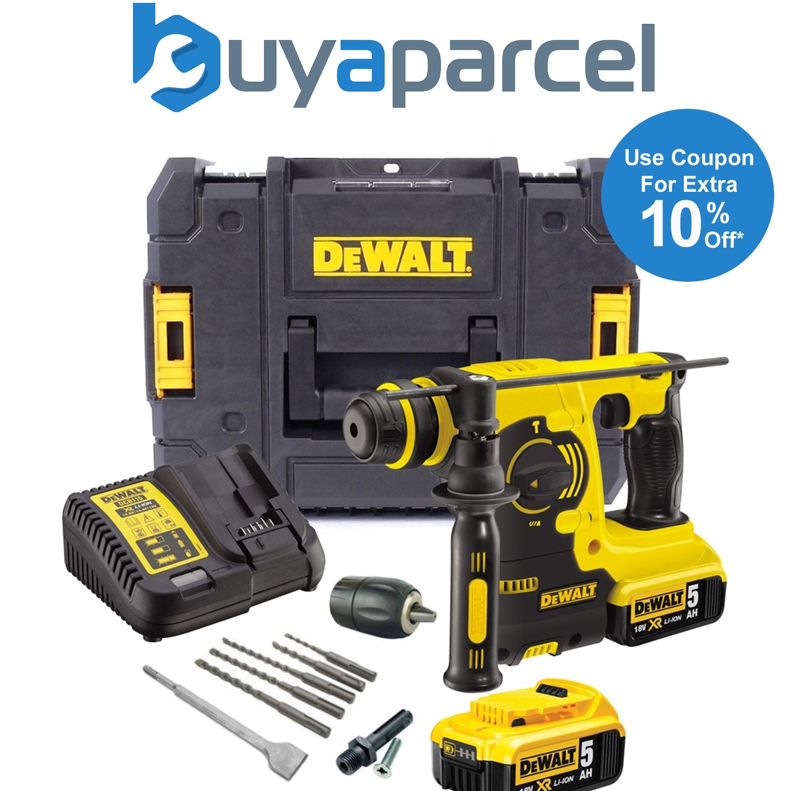 Dewalt DCH253P2 18v 3kg SDS+ Rotary Hammer Drill, 2 x 5.0ah Batt Charger + Chuck