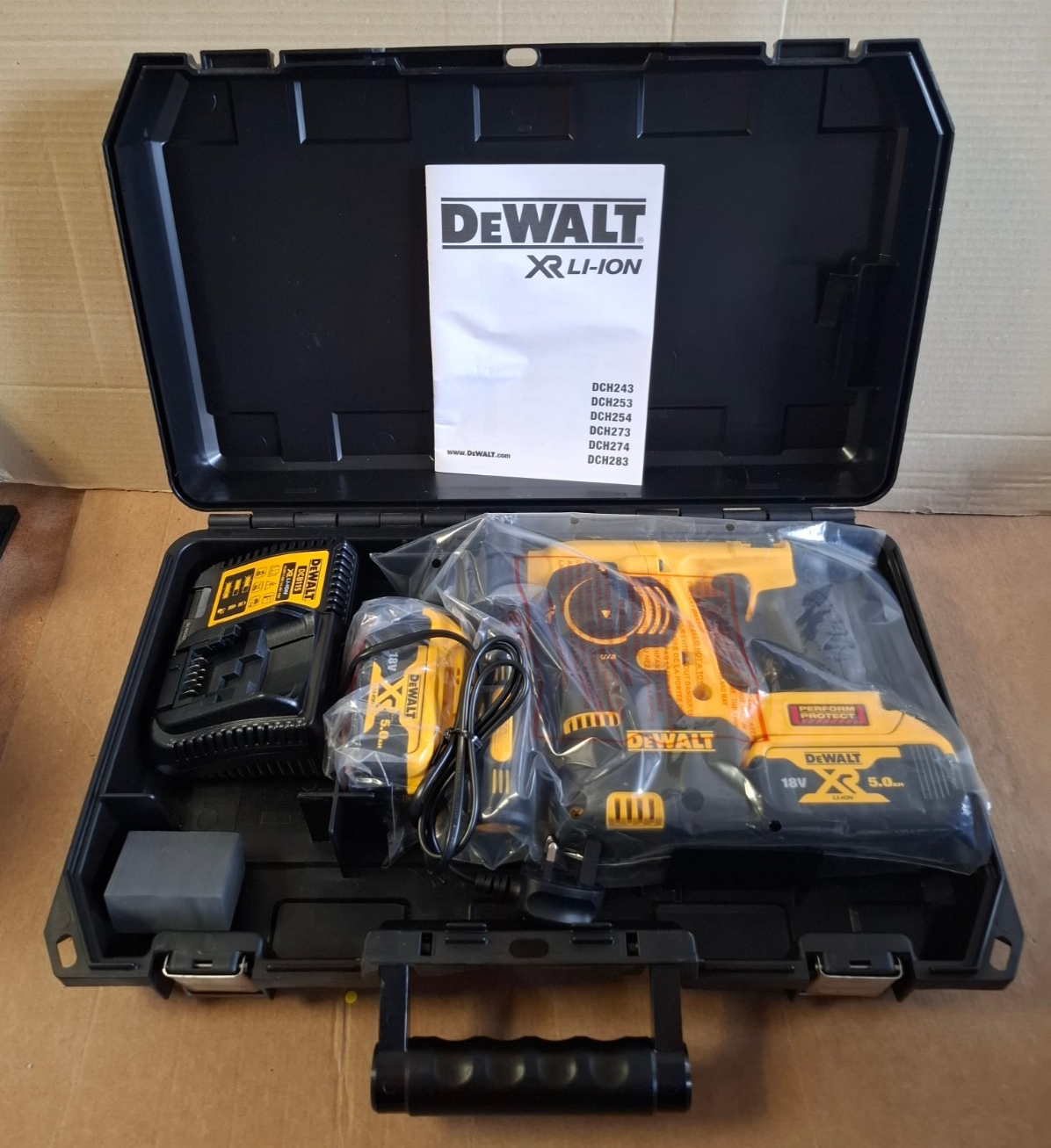 Dewalt DCH253P2 18v 3kg SDS+ Rotary Hammer Drill, 2 x 5.0ah Batt Charger + Case