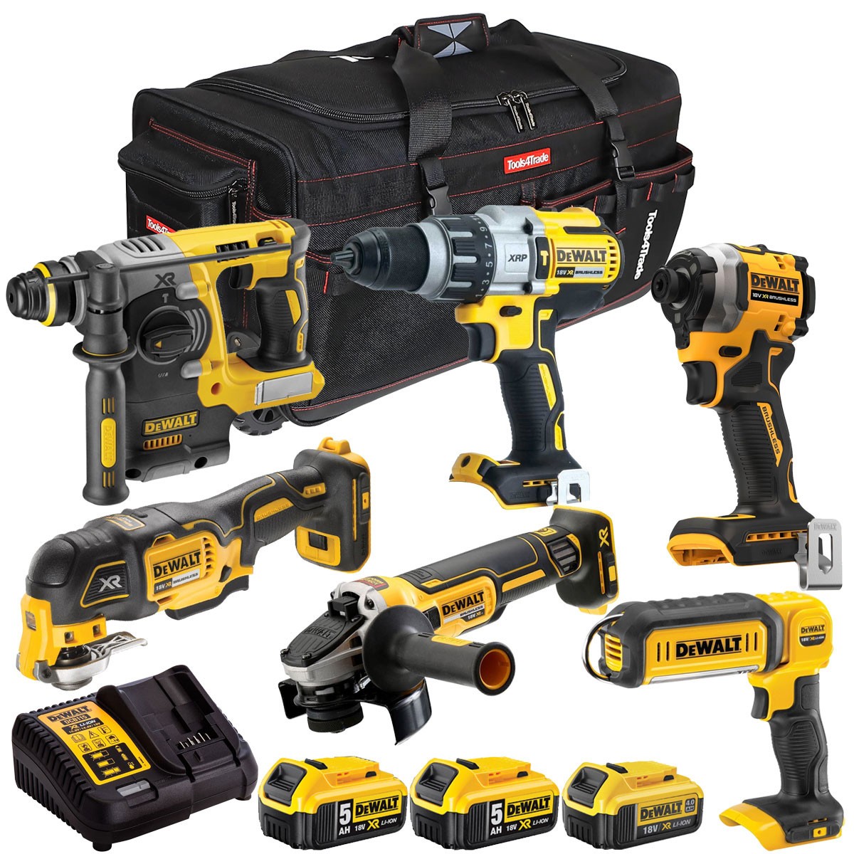 Dewalt 18V XR 7 Piece Monster Tool Kit 3 x 5.0Ah Battery Charger Case T4TKIT-439