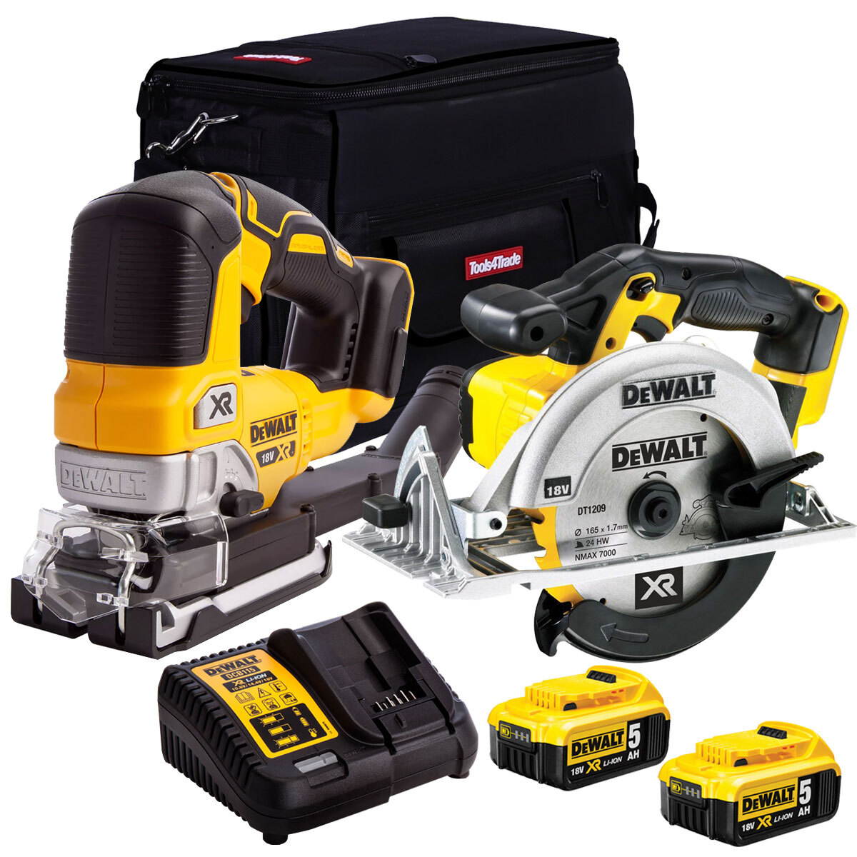 Dewalt 18V XR Circular Saw & Jigsaw 2 x 5.0Ah Battery Charger & Bag T4TKIT-707