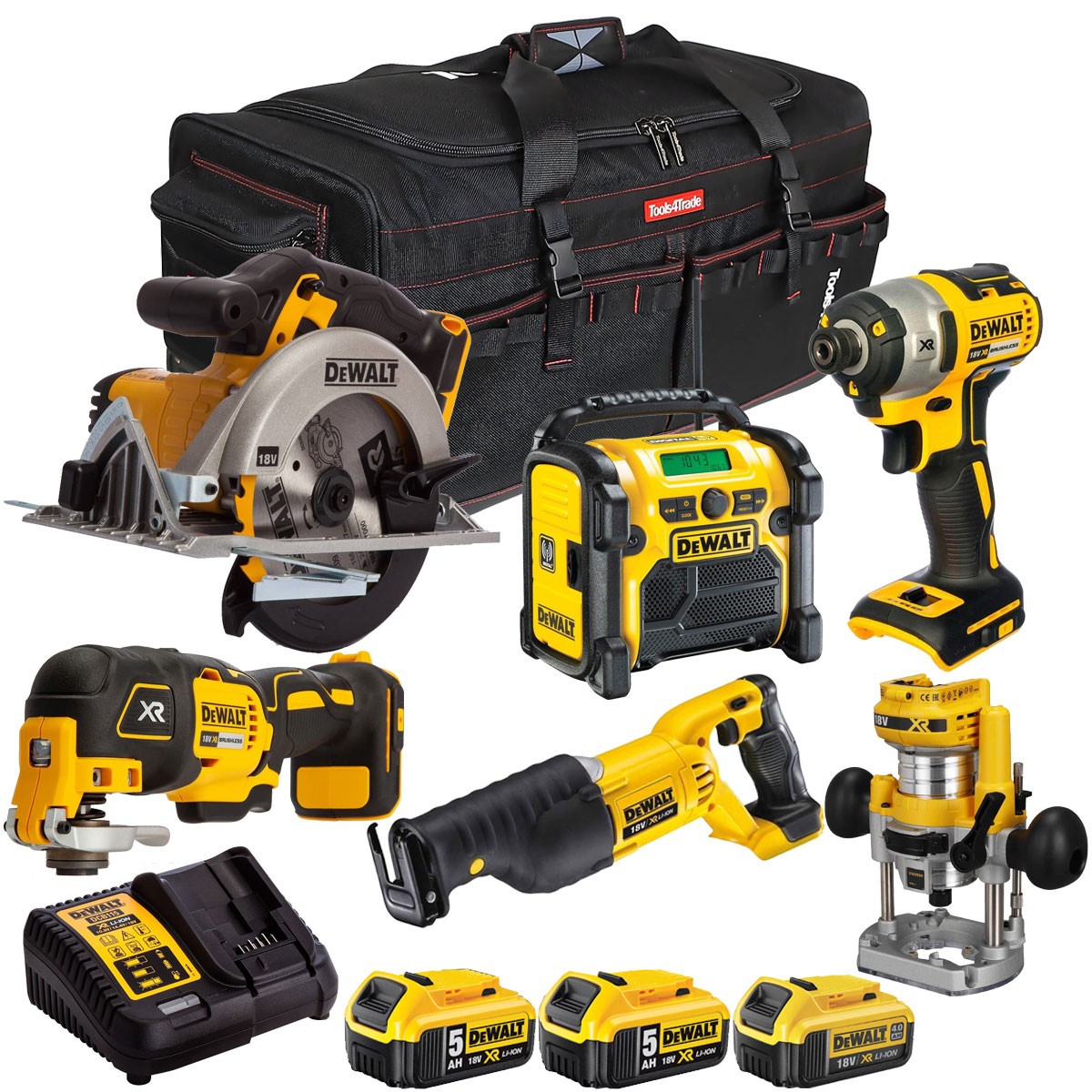 Dewalt 18V XR 6 Piece Combo Tool Kit with 3 x Battery Charger & Bag T4TKIT-2913