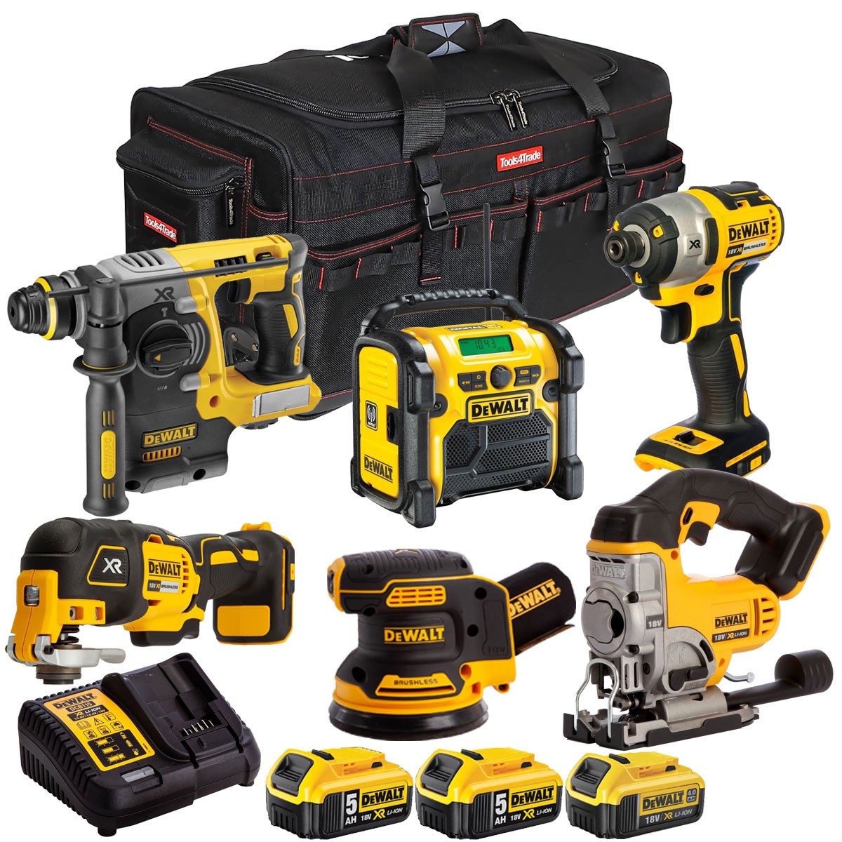 Dewalt 18V XR 6 Piece Combo Tool Kit with 3 x Battery Charger & Bag T4TKIT-2899