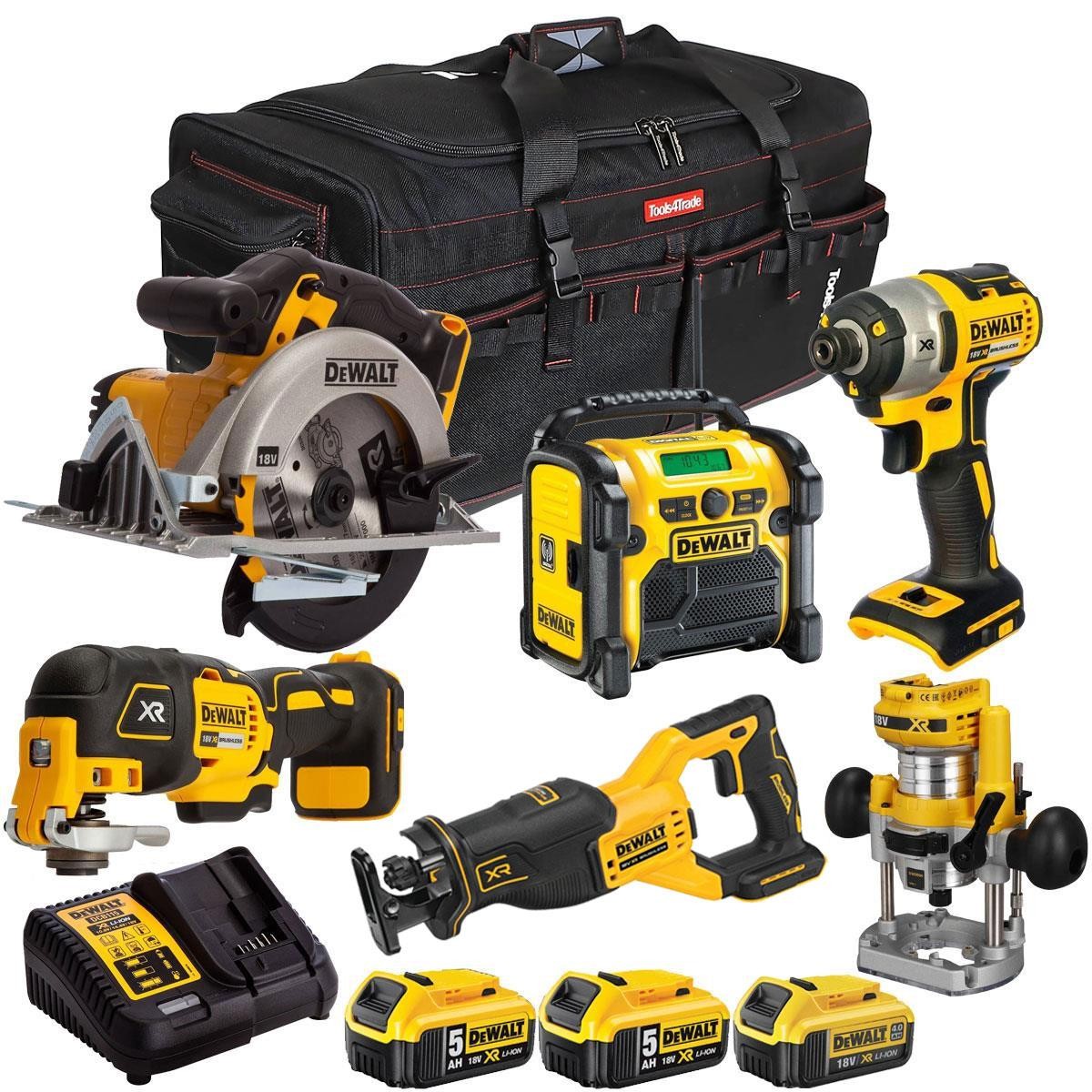 Dewalt 18V XR 6 Piece Power Tool Kit 3 x 5.0Ah Battery Charger & Trolley Toolbox
