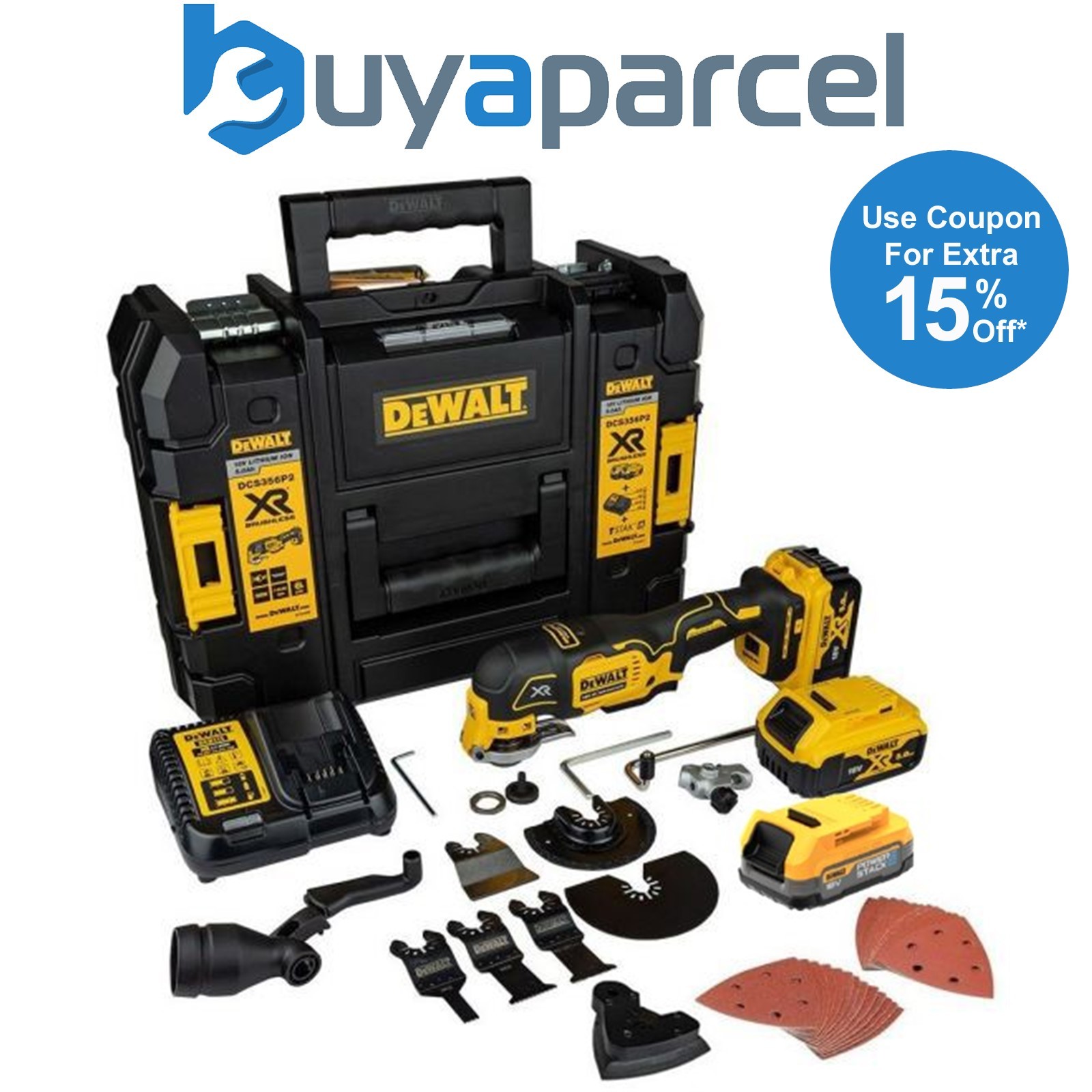 Dewalt DCS356P2 18v XR Brushless Multi Tool +35 Accs +Tstak 2x5ah +1x Powerstack