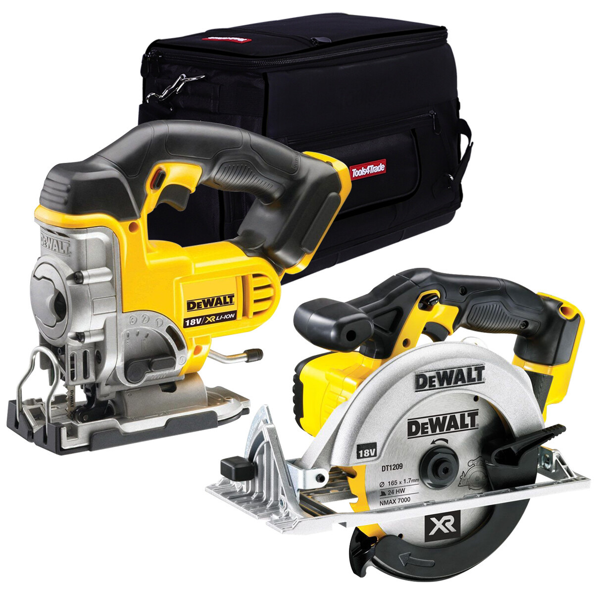 DeWalt DCS331N 18V XR Cordless Jigsaw & DCS391N Circular Saw Body With Tool Bag