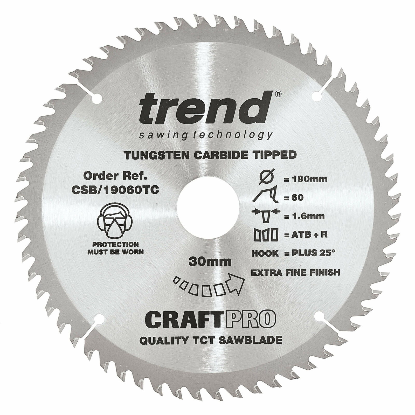 Trend CRAFTPRO Wood Cutting Saw Blade for DeWalt DCS575 190mm 60T 30mm