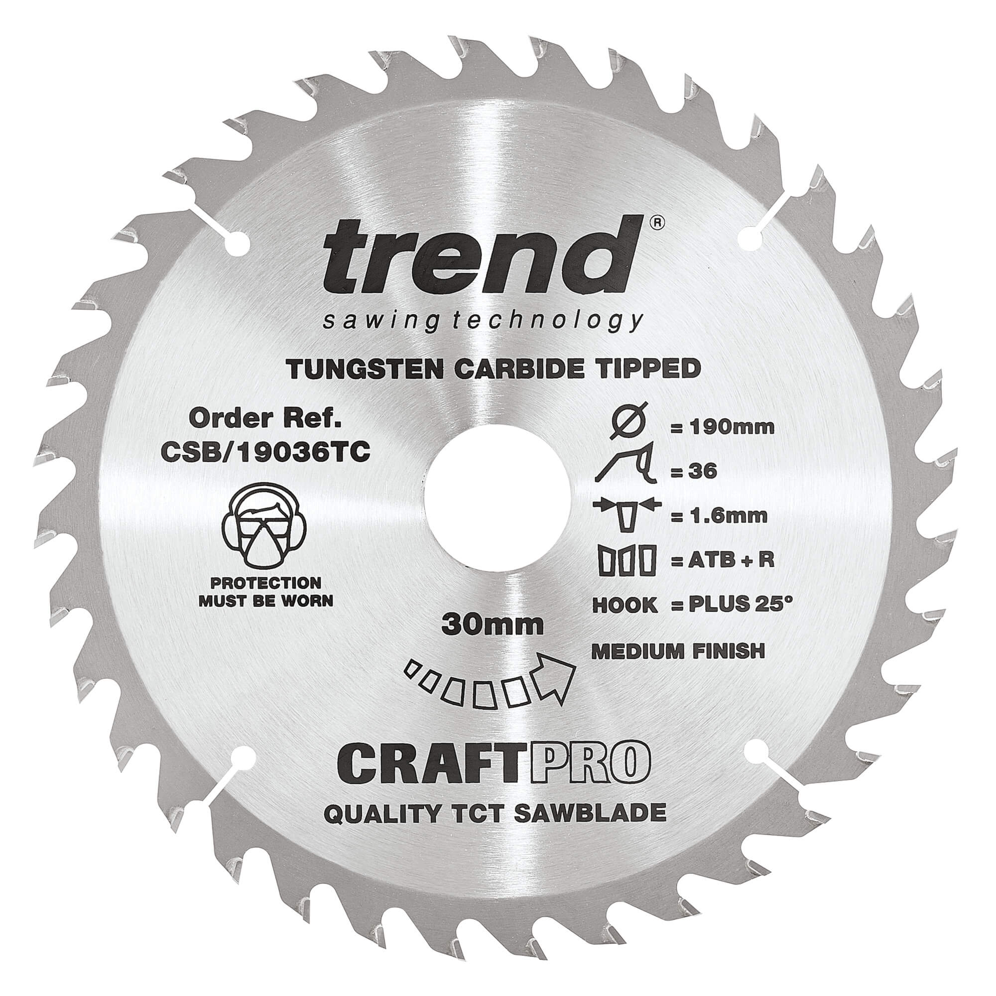Trend CRAFTPRO Wood Cutting Saw Blade for DeWalt DCS575 190mm 36T 30mm
