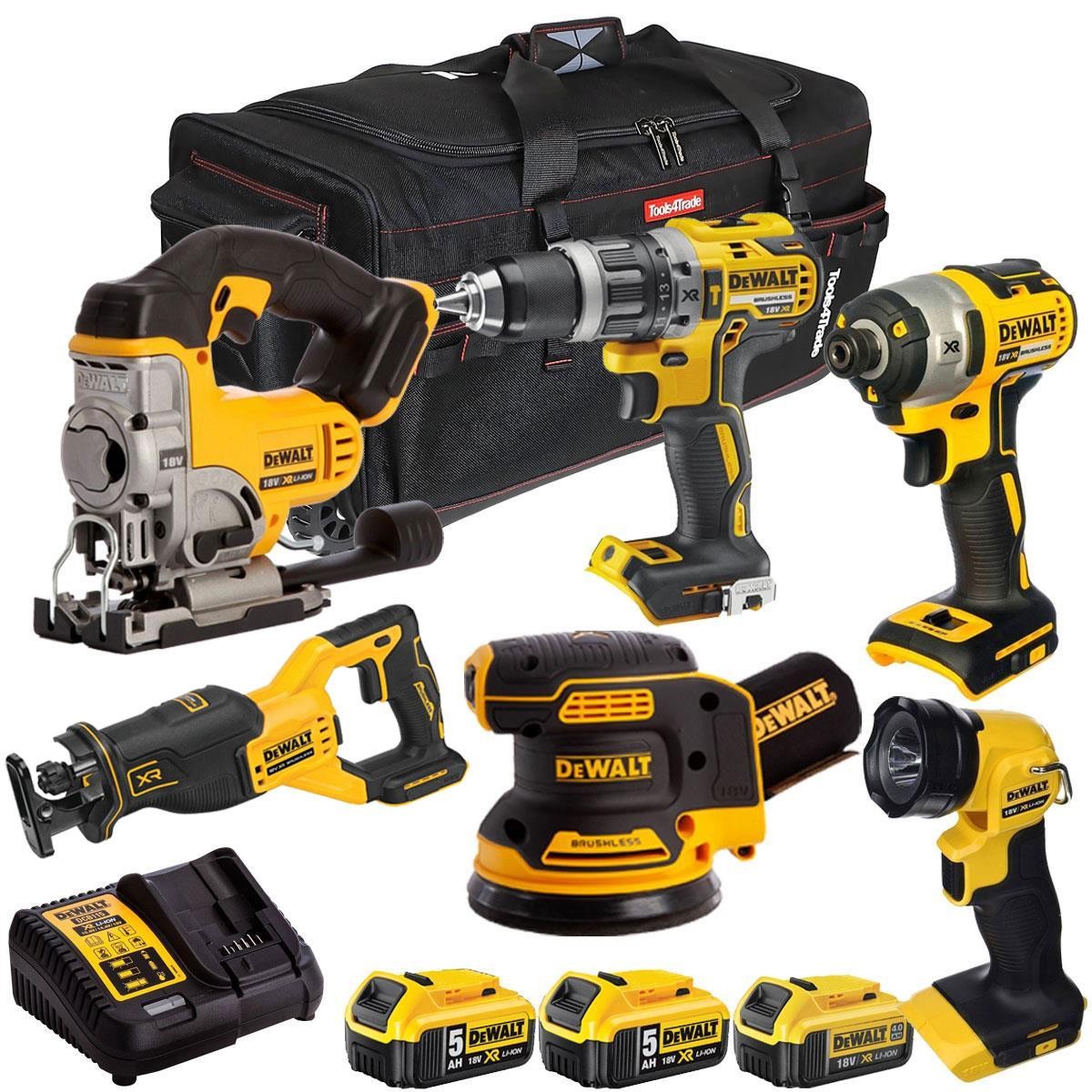 Dewalt 18V XR 8 Piece Monster Tool Kit 3 x 5.0Ah Battery Charger Case T4TKIT-445