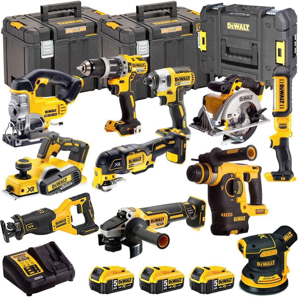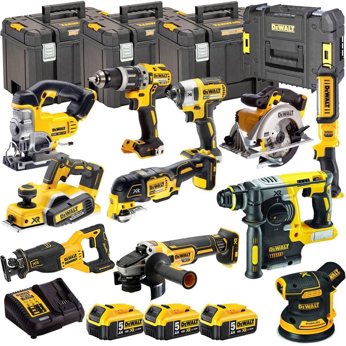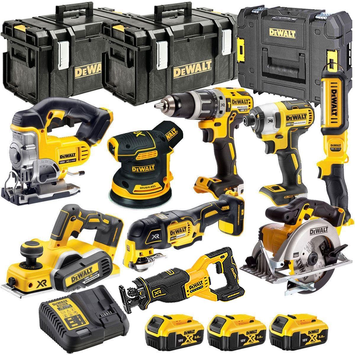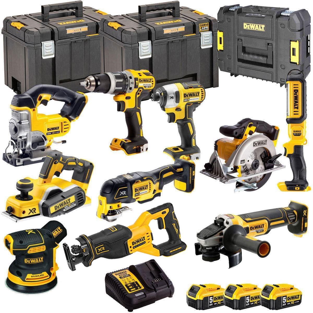 Dewalt 18V XR 10 Piece Power Tool Kit 3 x 5.0Ah Battery Charger Case T4TKIT-496