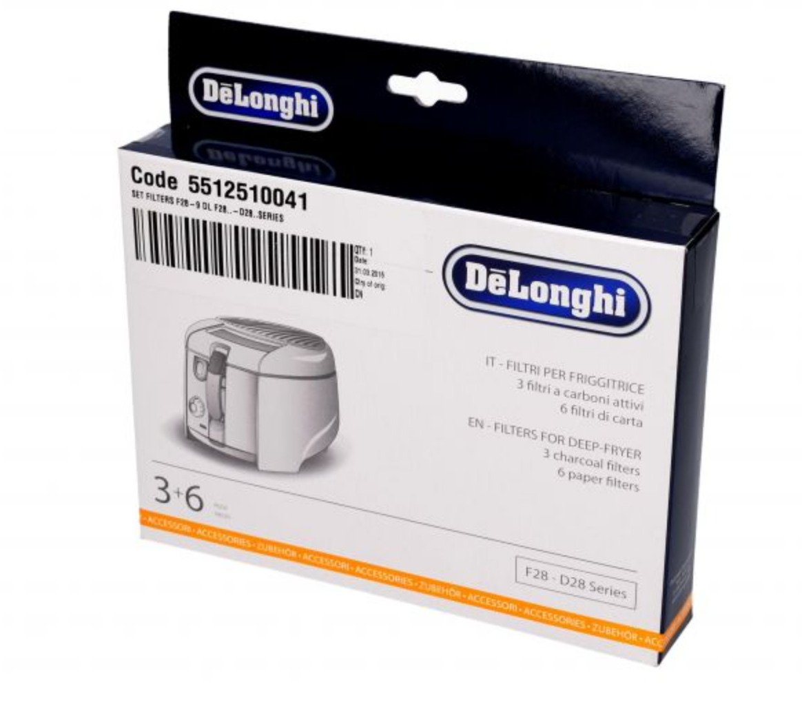 De'Longhi Genuine Original F28/D28 Series Deep Fat Fryer Filters - Pack of 6 Paper & Charcoal Filters - Easy to Fit