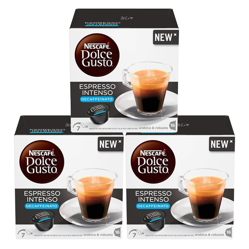 Nescafé Dolce Gusto Espresso Intenso Decaf/Decaffeinated Coffee Pods, Pack of 3 (Total 48 Pods)