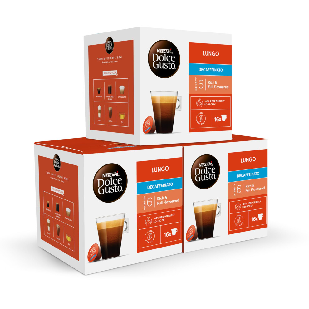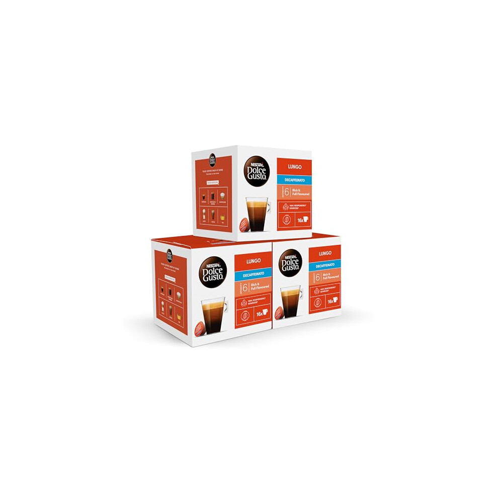 NESCAFÃ Dolce Gusto Lungo Decaf Coffee Pods - total of 48 Decaffinated Coffee Capsules - (3 Packs) 16 Pods