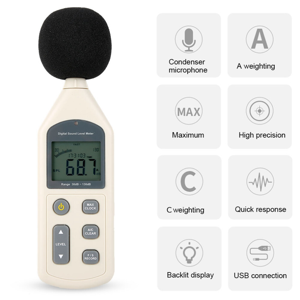 Digital Sound Level Noise Meter Measurement 30-130DB DB Decibel Detector Audio Tester Diagnostic Tool