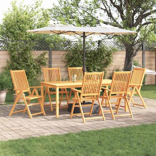 Teenpull Garden Dining Set Folding 7 pcs, Brown Solid Acacia Wood Outdoor Patio Furniture Set, Durable Weather-Resistant Design for Patio, Deck, or Balcony, Easy Storage