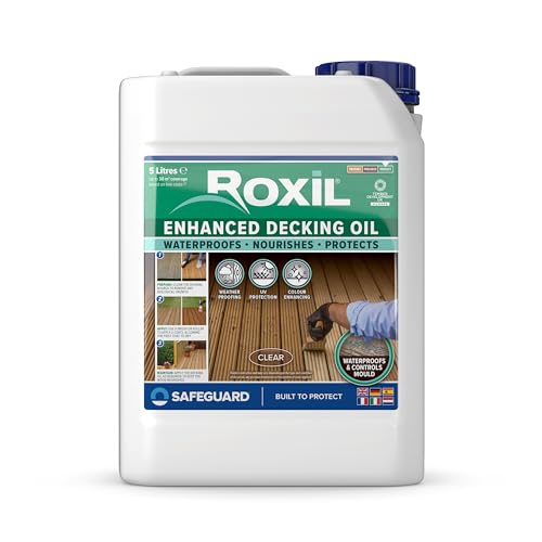 Roxil Enhanced Decking Oil 5L Clear - Weatherproof, Nourish and Protect Outdoor Wood with Added UV Protection