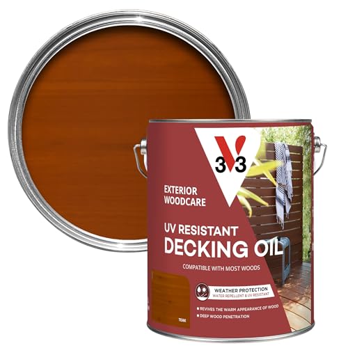 V33 UV Resistant Decking Oil - Protects & Revives - Enhanced UV Filters - Water-Repellent - Teak 5 Litres