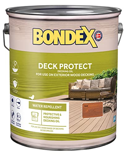Bondex Deck Protect - Protective Decking Oil - Teak –Suitable for Exerior Wood - Water Repellant & Mould Resistant - Matt Finish – 5L