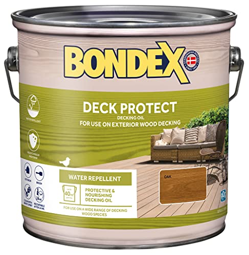 Bondex Deck Protect - Protective Decking Oil - Oak - Suitable for Exerior Wood - Water Repellant & Mould Resistant - Matt Finish - 2.5L