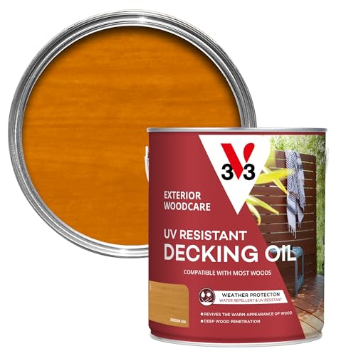 V33 UV Resistant Decking Oil - Protects & Revives - Enhanced UV Filters - Water-Repellent - Medium Oak 2.5 Litres