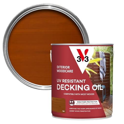 V33 UV Resistant Decking Oil - Protects & Revives - Enhanced UV Filters - Water-Repellent - Teak 2.5 Litres