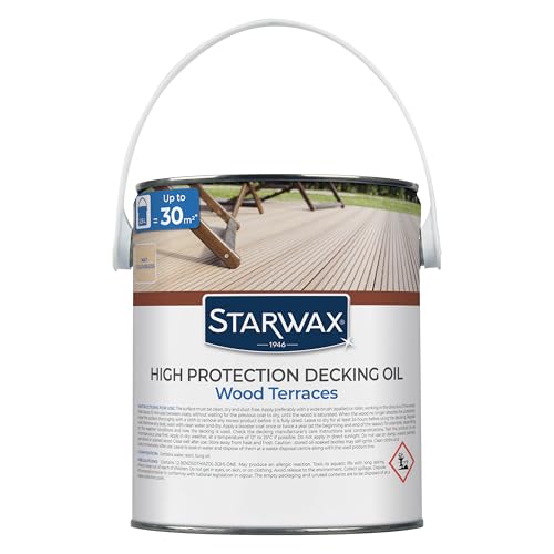 STARWAX - High Protection Decking Oil - Wood Terraces - For Terraces and Colorless Exterior Wood - Protects - Deeply Nourishes - Prevents Drying - 2.5L - 1l = 10 to 12m²