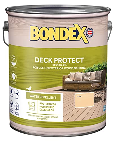 Bondex Deck Protect - Protective Decking Oil - Clear - Suitable for Exerior Wood - Water Repellant & Mould Resistant - Clear – 5L