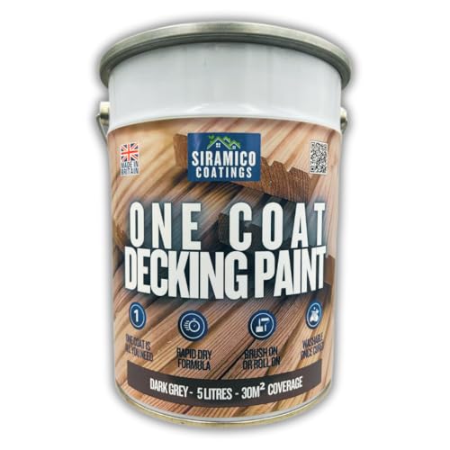 SIRAMICO COATINGS One Coat Anti-Slip Decking Paint | 5 litres | 7 Luxury Colours I Mould & UV Resistant Formula | White - Grey - Sage Green - Black - Brick Red (Dark Grey)