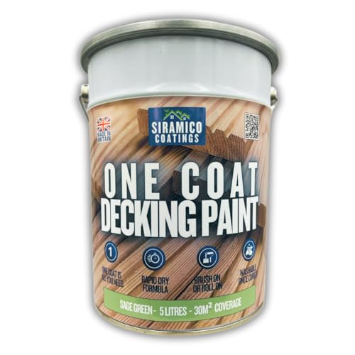 SIRAMICO COATINGS One Coat Anti-Slip Decking Paint | 5 litres | 7 Luxury Colours I Mould & UV Resistant Formula | White - Grey - Sage Green - Black - Brick Red (Sage Green)