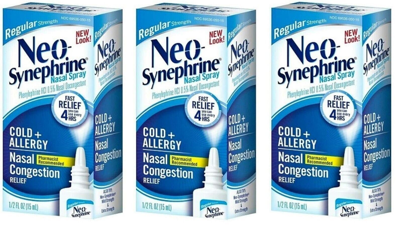 Neo-Synephrine Nasal Decongestant Regular Strength Spray .5 oz X 3 Packs