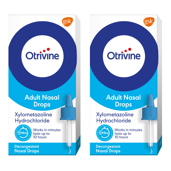 2x Otrivine Adult Nasal Drops Decongestant - Lasts up to 10 Hours - 10ml