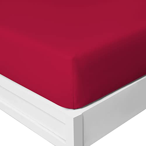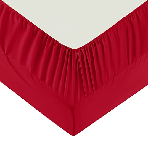 Moonlight Bedding Single Fitted Sheet - 25cm Deep Pockets Elastic Red Fitted Bed Sheets - Brushed Microfiber Fade Resistant, Shrinkage & Wrinkle free Easy Care Fitted Single Bed Sheets (91 x 190 Cm)