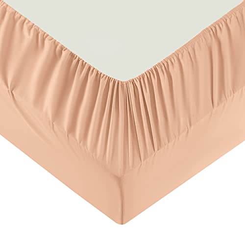 Moonlight Bedding Single Fitted Sheet - 25cm Deep Pockets Elastic Peach Fitted Bed Sheets - Brushed Microfiber Fade Resistant, Shrinkage & Wrinkle free Easy Care Fitted Single Bed Sheets (91 x 190 Cm)