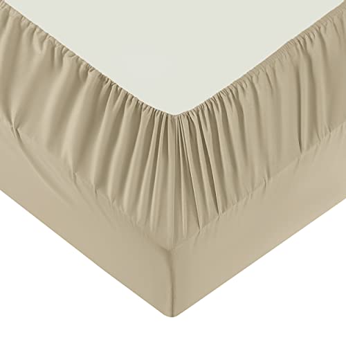 Moonlight Bedding Double Fitted Sheet - 25cm Deep Pockets Ultra Soft Brushed Microfiber Beige Double Fitted Bed Sheets Breathable, Fade Resistant Easy Care Double Bed Sheet (137 x 190 Cm)