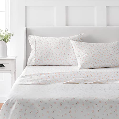 Martha Stewart 100% Cotton Queen Sheet Set - 4 Piece, Soft, Smooth, Durable, Easy Care, 16" Deep Pocket Sheet, Bedding Sheets, Sateen Sheet, 1 Flat, 1 Fitted, 2 Pillowcases, Blush