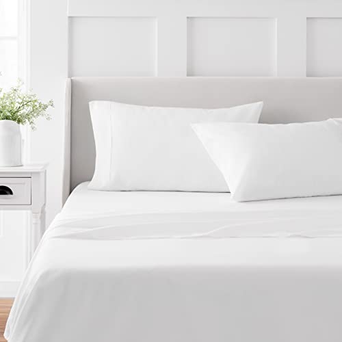 Martha Stewart 100% Cotton Queen Sheet Set - 4 Piece, Soft, Smooth, Durable, Easy Care, 16" Deep Pocket Sheets, Bedding Sheets, Sateen Sheet, 1 Flat, 1 Fitted, 2 Pillowcases, White