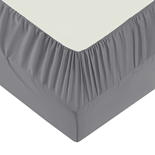 Moonlight Bedding Single Fitted Sheet - 25cm Deep Pockets Elastic Grey Fitted Bed Sheets - Brushed Microfiber Fade Resistant, Shrinkage & Wrinkle free Easy Care Fitted Single Bed Sheets (91 x 190 Cm)