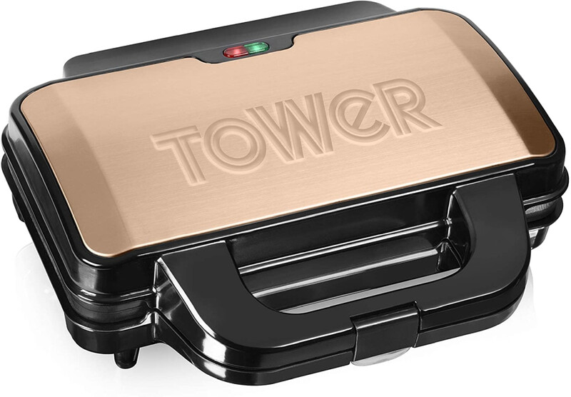 Tower Deep Fill Sandwich Maker with Extra Deep and Easy to Clean Non-Stick Plates, Automatic Temperature Control, 900W, Rose Gold and Black, T27013RG