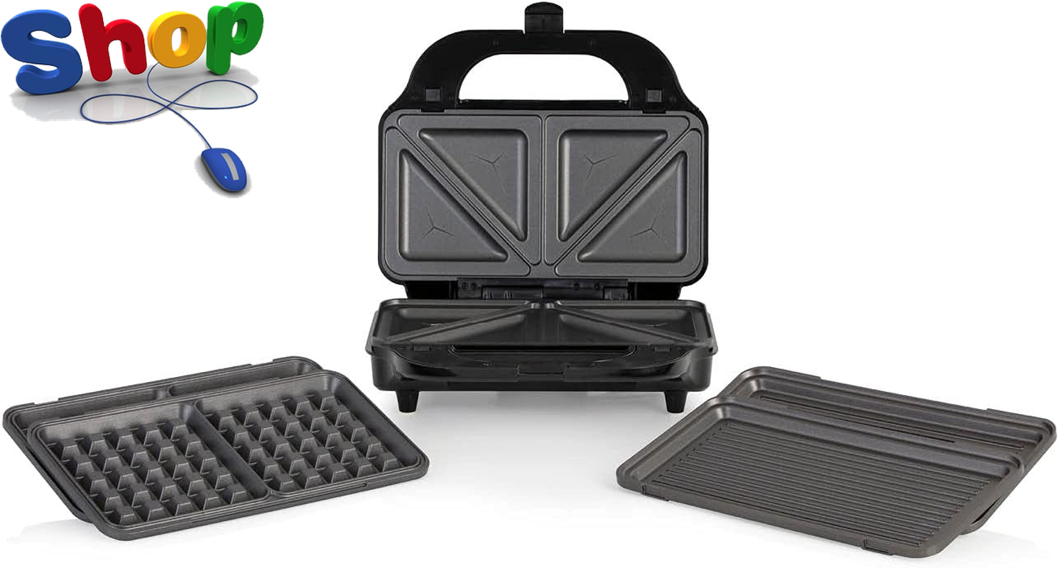 Sensio Home Multi Functional 3 in 1 Stylish Waffle, Deep Fill Sandwich, Panini or Grill Maker Machine Interchangeable Non Stick Easy Clean Plates, Secure Lock Plus Ready & Power Lights, Powerful Iron