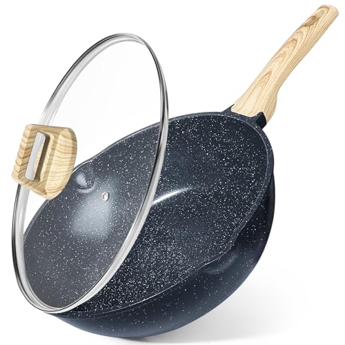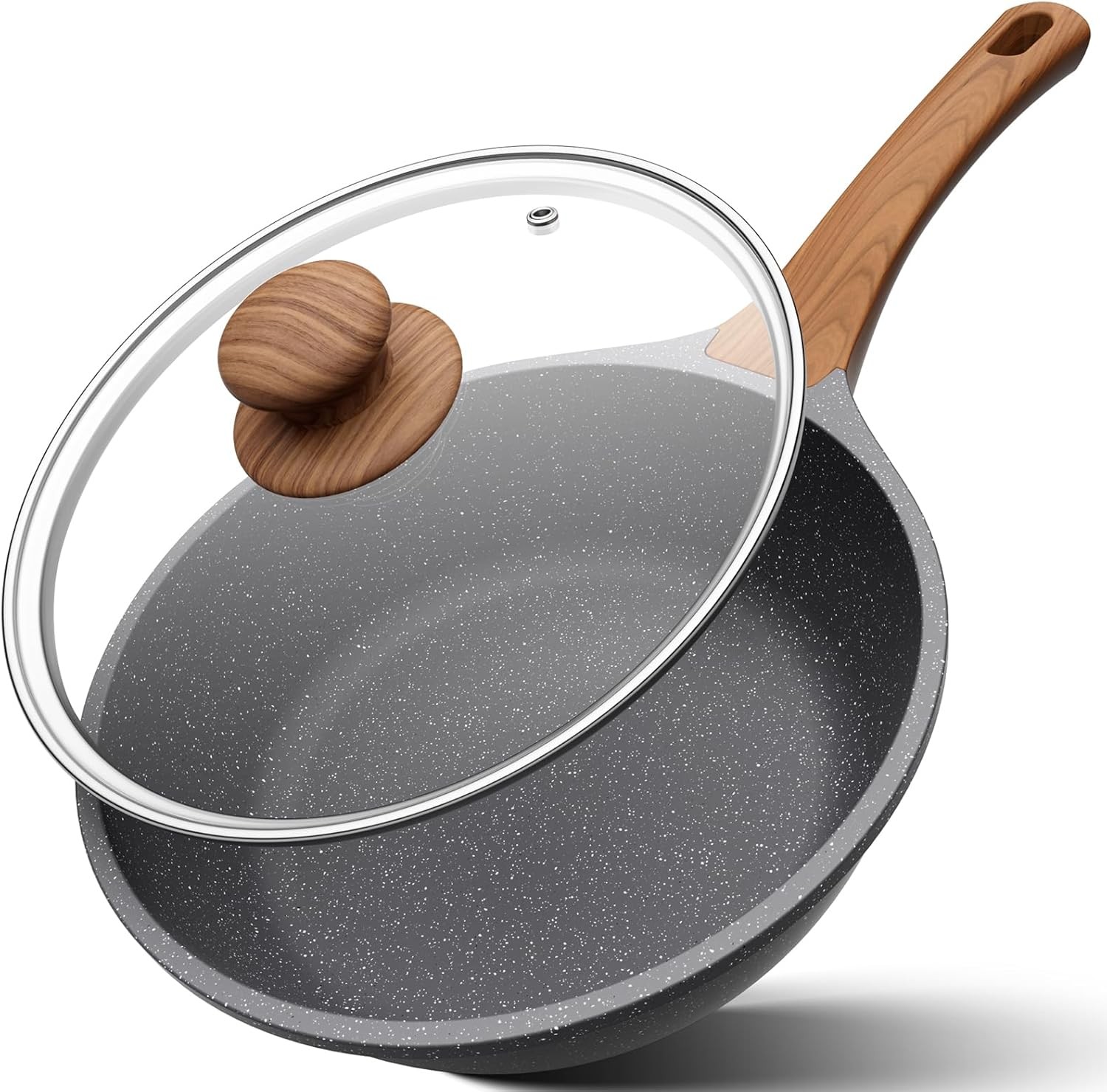 28cm Deep Non Stick Frying Pan with Lid Induction Saute Skillet Wok Oven Safe