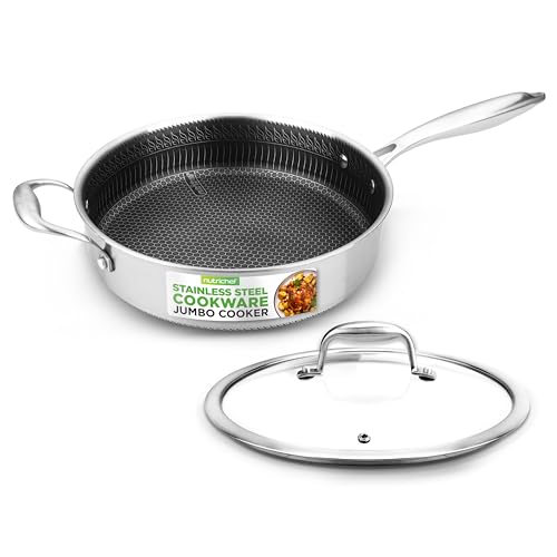 NutriChef Stainless Steel Saute Pan with Lid 28cm, 3.2L Non-Stick Deep Frying Pans, Scratch-Resistant Honeycomb Texture, Oven and Induction Safe, Skillet for Cook and Saute Use