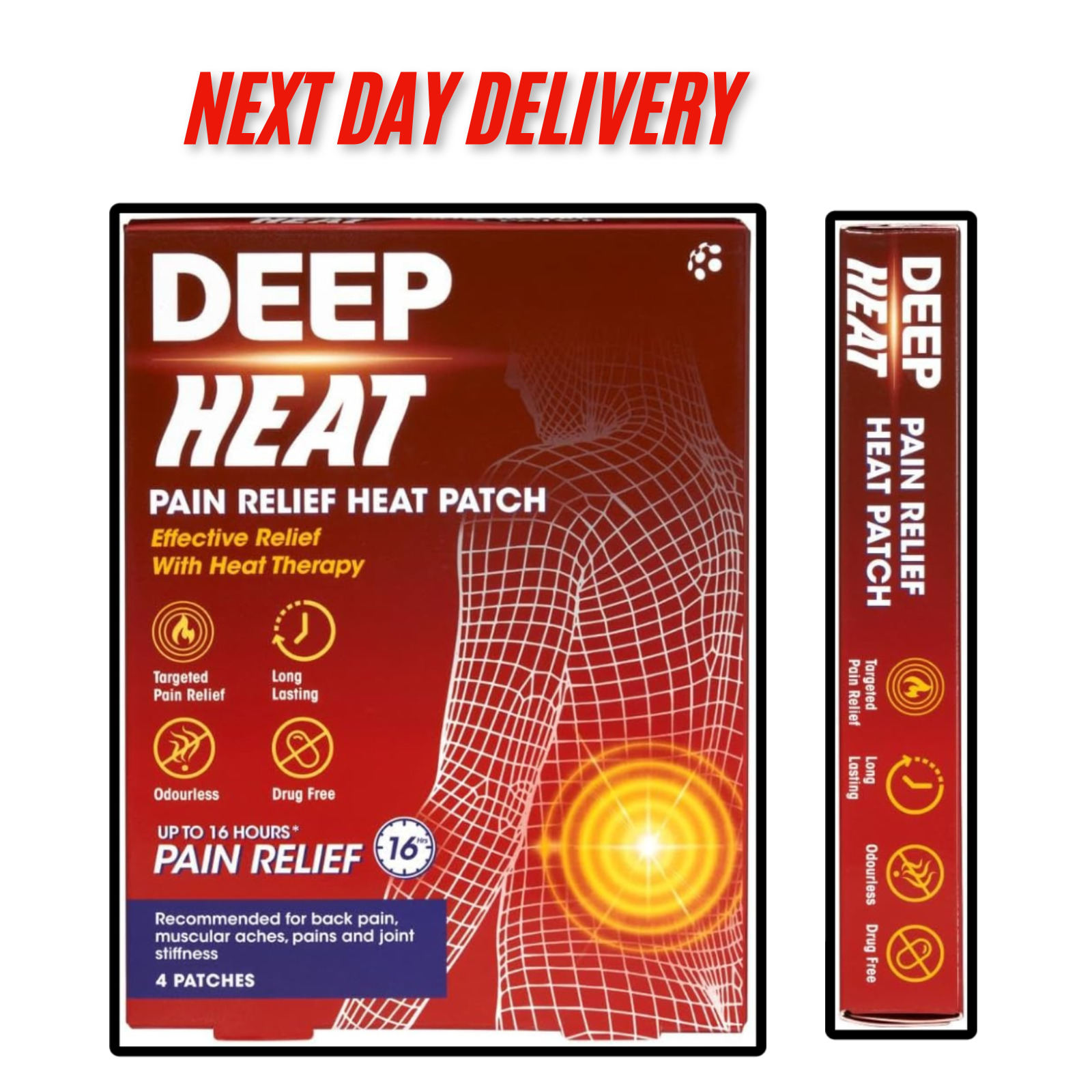 Deep Heat Pain Relief Heat Patch, Muscular Aches, Pains, Joint Stiffness 4 Pack