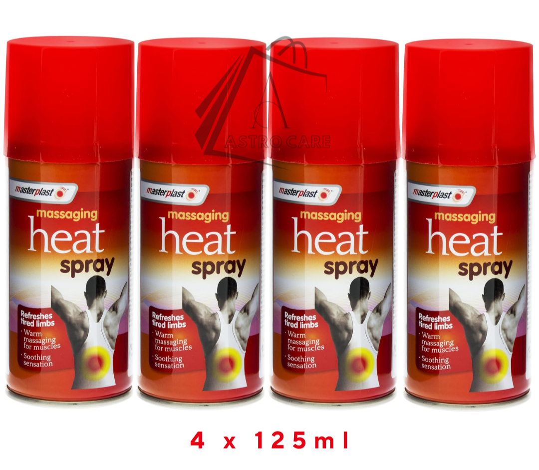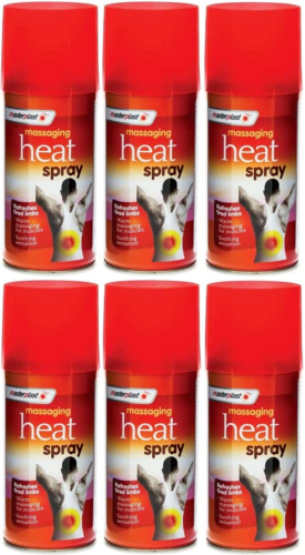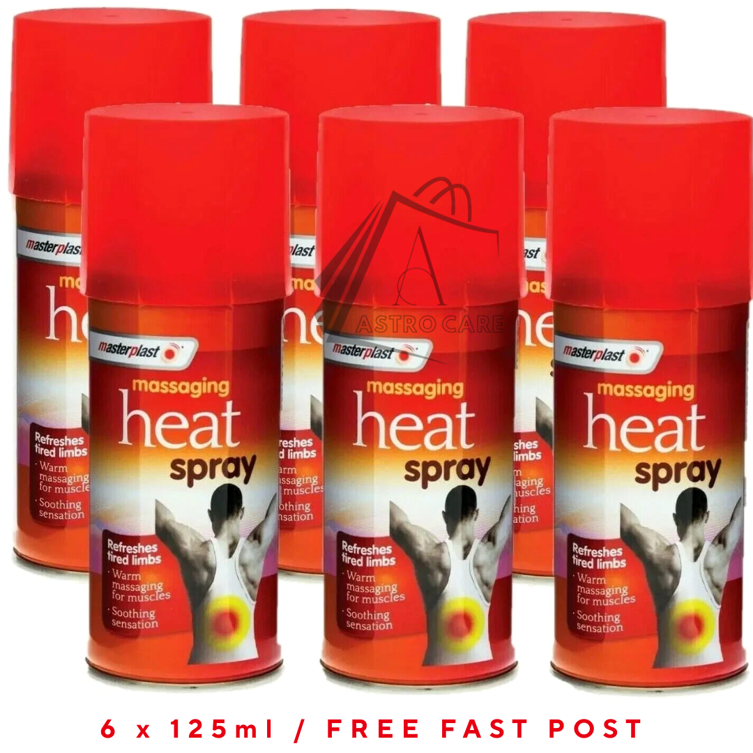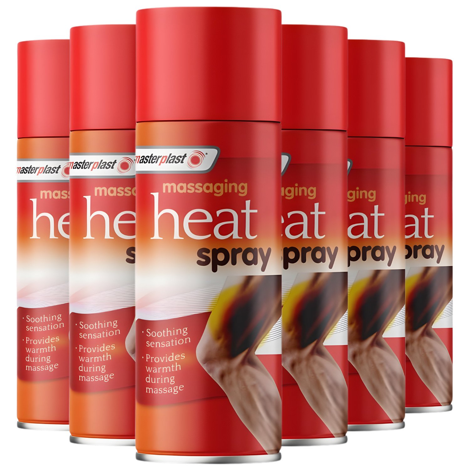 Masterplast 6 Pack 150ml Heat Massaging Spray - Deep Muscular Relief for Sports Sprains & Injuries - Body Lubricant for Women & Pr