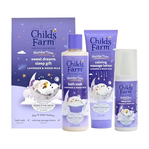 Childs Farm SlumberTime Sweet Dreams Sleep Gift Set | 3-Step Sleep Routine | Lavender & Moon Milk Bath Soak 250ml, Calming Massage Lotion 150ml, Sleep Mist 100ml | Suitable for Dry & Sensitive Skin